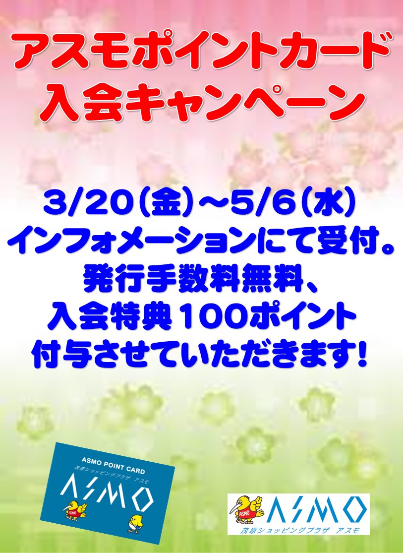 3月20日 〜 5月6日アスモポイントカード入会キャンペーン -